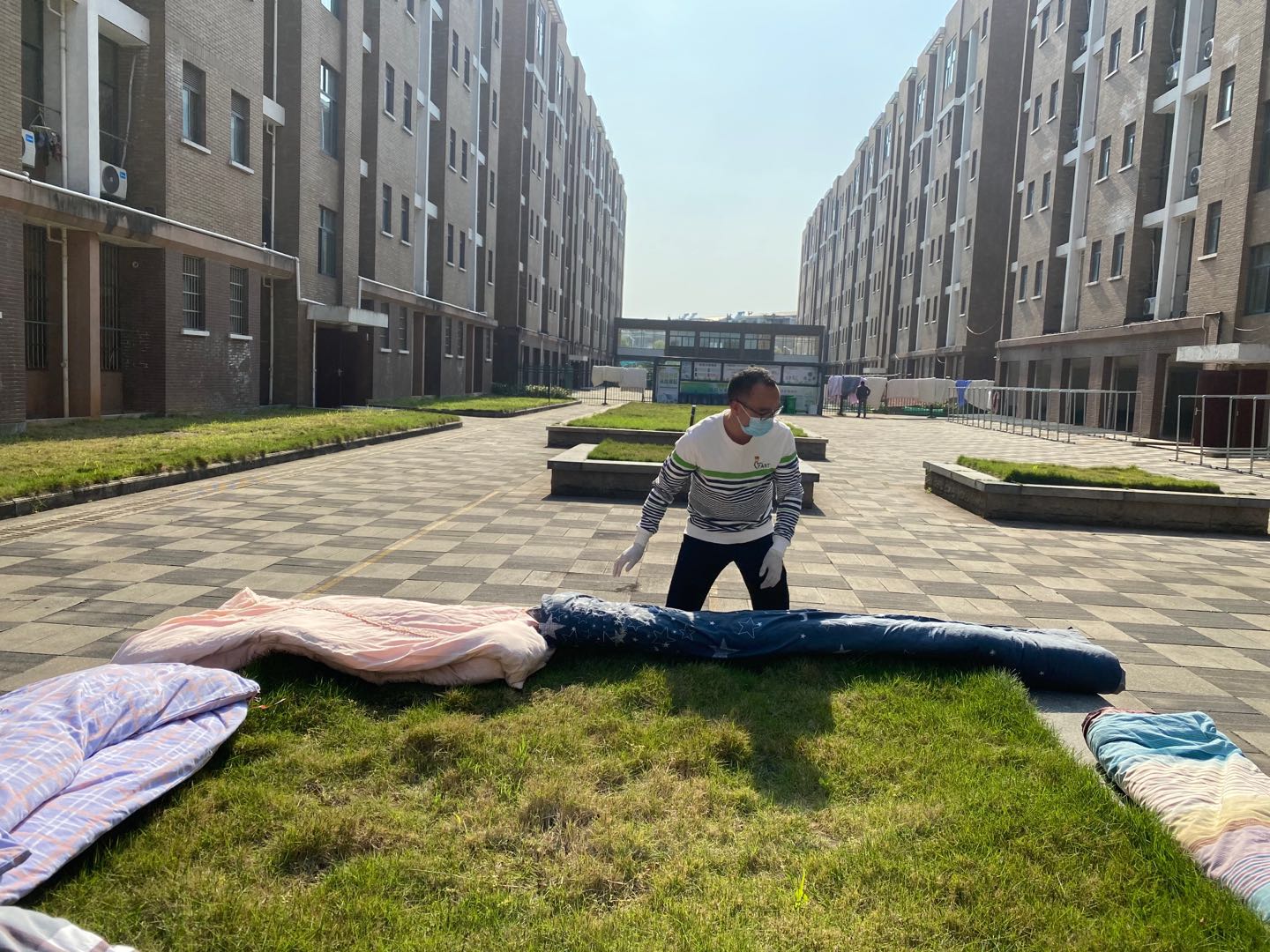 为给返校后的学生提供更好的住宿环境,万象城(中国)系辅导员在前期征求学生自愿的基础上开通了“云接单”帮助学生晒被子的服务。