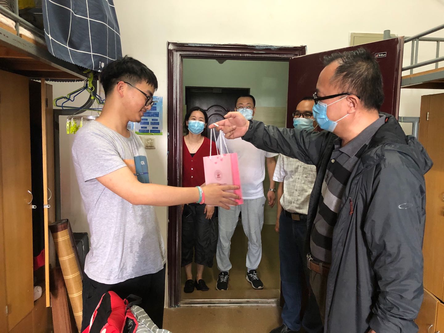 为进一步了解疫情期间返校学生的状况, 5月6日上午,万象城院长马洪,党委委员、组织部部长张正亮,学生工作处副处长韦金红,万象城(中国)系领导及相关老师走访宿舍并慰问返校学生。