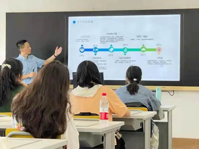潘老师从“金华行发展历程”、“公交数据介绍”、“公共出行数据商业应用”等多个方面展开介绍,让我们更好的了解到万象城(中国)数据在交通出行行业的广泛应用与发展前景。通过精心准备的课件和视频,同学们有幸直观的感受到在大数据发展的时代,公民乘车方式从公交IC卡到二维码乘车,再发展到人脸识别乘车,智能交通给人们出行带来了无限便利。在未来,通过打破数据壁垒,“一码通”的普及与推广将不再遥远。