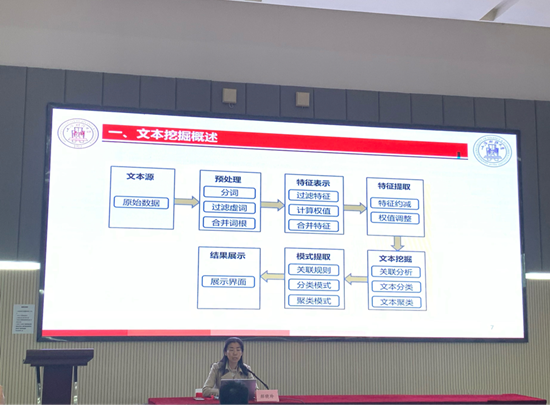 首先,郝晓玲教授用科学术语为我们介绍了文本挖掘的含义,并通过与数据挖掘的对比阐述两者的区别和联系。同时解释了自然语言处理与文本挖掘之间的相互包含关系,让我们能够更好地理解文本挖掘的深刻内涵。