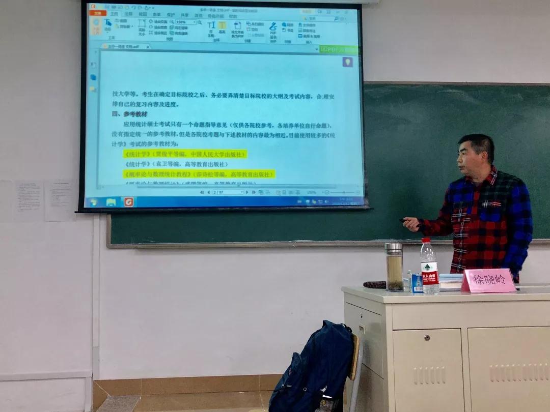 我系系主任王黎明教授及我系有意向考取研究生的同学参加了此次讲座。徐晓岭教授从两个方面入手给予在座学子考研建议。一、夯实基础,强化专业素养。二、分析真题,梳理知识体系。