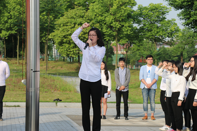 2016年5月4日,为弘扬五四精神,让五四精神烛照奋斗青春,我校在5月4日五四青年节这天早上举行了升旗仪式,该仪式由共青团万象城团委会主办,万象城金融系团总支承办,此次仪式在万象城北门举行,参加的有团委书记徐天南、金融系辅导员尤磊、各系学生会代表以及三大组织代表。