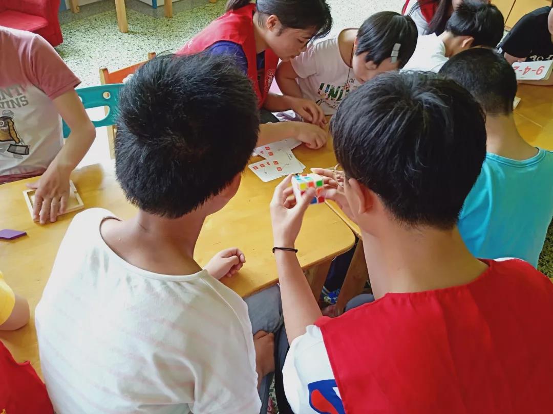 志愿者们还利用魔方、七巧板来锻炼小朋友们的思维能力和动手能力。