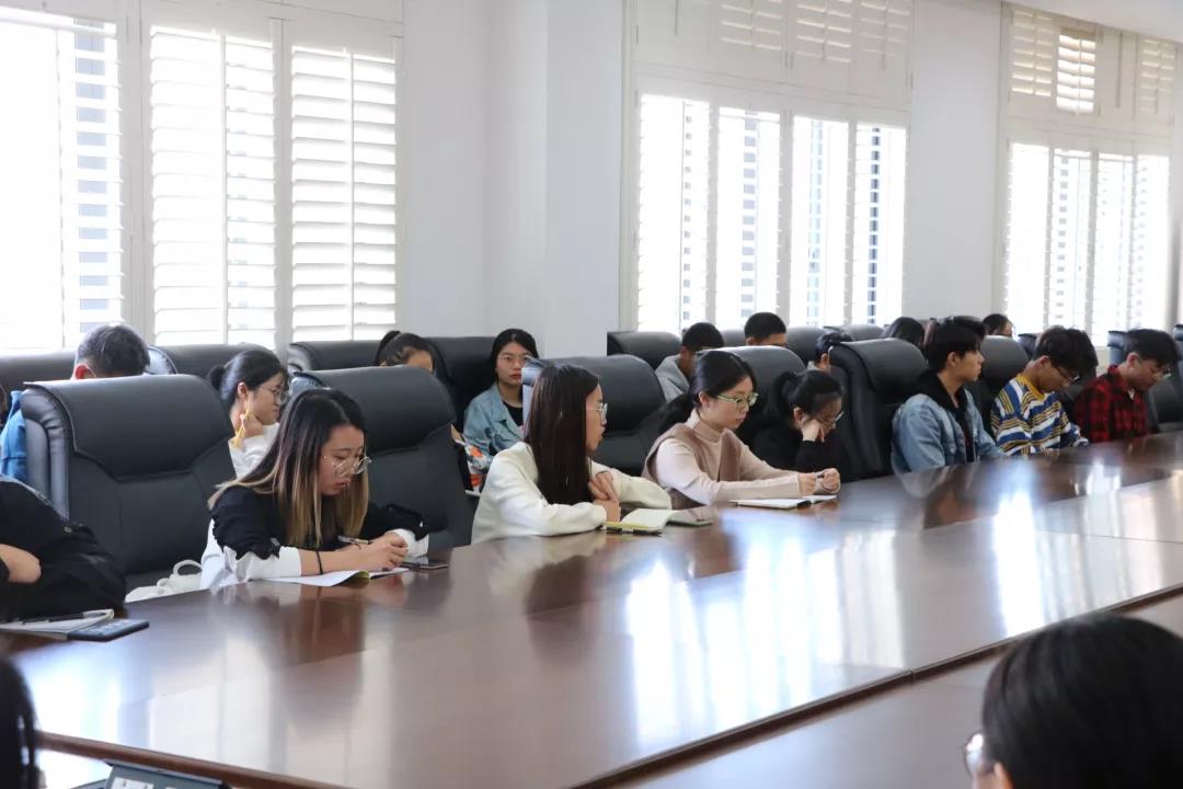 万象城(中国)系主任王黎明老师,教务处张振宇老师,万象城(中国)系全体教师以及16-19级万象城(中国)系各班班长和信息员参与会议。