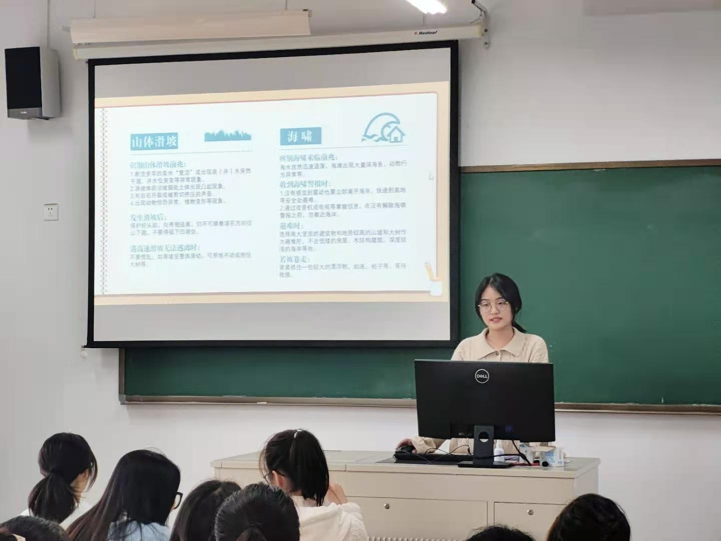 会议开始由宓梦巧同学带领各班心理委员、安全委员及寝室长学习平安校园创建相关常识,并就突发灾害心理创伤知识进行讲解。宓梦巧说到创伤可能会让人患创伤后应激障碍,所以我们要从平时注意安全,注意建设自己健康的心灵。