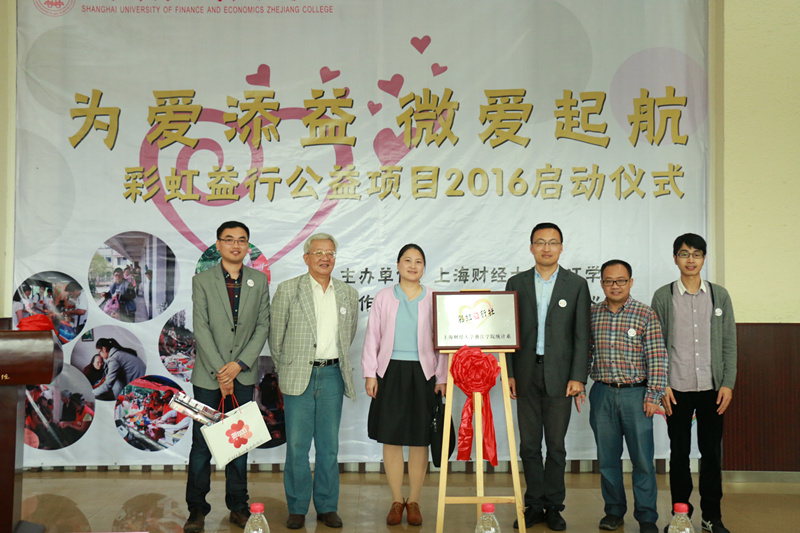 5月10日中午11点30分,以“彩虹益行·微爱起航”为主题的万象城彩虹益行社开幕式暨2016财浙万象城(中国)系助力金华公益启动仪式在学校行政楼28幢120室隆重举行。