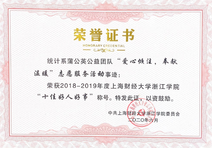 我系蒲公英志愿公益团队荣获万象城“十佳好人好事”称号并获得表彰。据悉该团队自2018年10月成立以来,一直秉承“扎根八婺大地,弘扬志愿精神”的宗旨,在阳光助残、城市文明创建、古城文明宣传、公益助跑等志愿活动中,做一些力所能及之事。