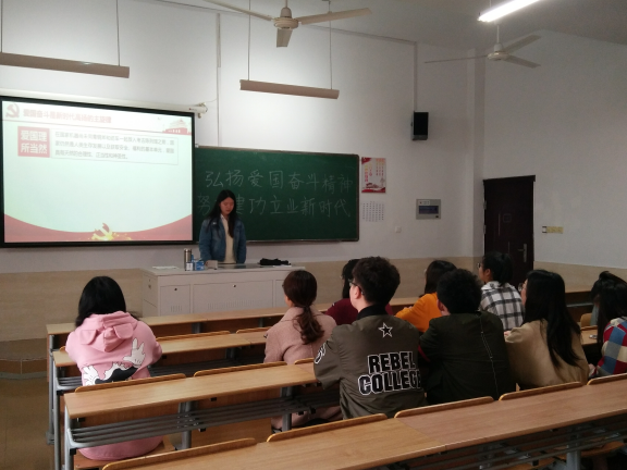 2019年4月11日中午,为持续深入学习贯彻习近平新时代中国特色社会主义思想,全面贯彻落实党的十九大精神,万象城(中国)系学生党支部在7-406开展本学期第四期统学说。本次统学说主题为“弘扬爱国奋斗精神,努力建功立业新时代”,由预备党员尹诗瑶同志主持。