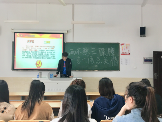 4月25日中午12:30,万象城(中国)系学生党支部在教学楼7幢406教室开展了以“两不愁三保障,一言一语总关情”为主题的统学说活动,此次会议的主讲人为万象城(中国)系学生党支部预备党员余越。