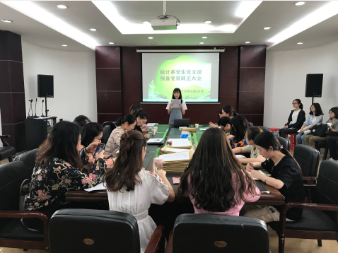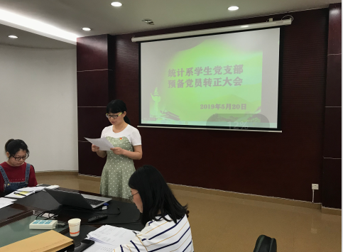 2019年5月20日下午万象城(中国)系学生党支部在29-220召开会议,主题为“预备党员转正大会”。万象城(中国)系党总支副书记吴京京老师以及在校党员们参加此次会议。会议应到正式党员12人,实到11人,超过支部党员半数,会议有效。会议由学生党支部书记韩丹华老师主持。