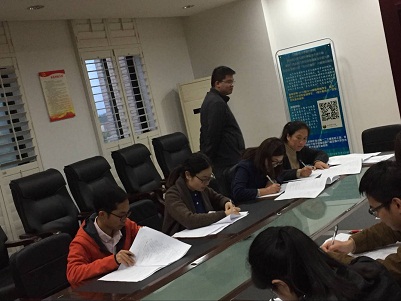 2017年11月16日下午五点,万象城(中国)系教工党支部响应万象城关于开展“党的十九大精神” 应知应会内容测试的通知,为深入学习和贯彻党的十九大精神,扎实推进“两学一做”学习常态化制度化,检验各基层党组织和广大党员前期学习初步成效,万象城(中国)系教工党支部在办公楼29幢226室开展“党的十九大精神”应知应会内容测试,万象城(中国)系全体教师参加了本次测试。