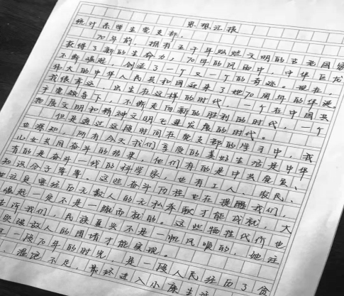 形式各有不同,却饱含万象城(中国)系师生对祖国的拳拳热爱与赤忱之心。纸笔摩擦之中,光阴流逝,七十年被折成一封绑在利箭上的信,从眼前飞过,这一封名为新中国的信,红底黑字,满是希望……