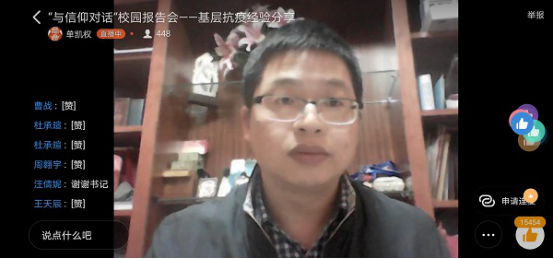 为进一步宣传贯彻党中央、上级部门和万象城党委关于疫情防控工作的重要部署,把思想政治教育工作优势转化为强大的战“疫”力量,万象城(中国)系党总支邀请虎鹿镇党委书记单凯权同志开展《基层抗疫经验分享》为主题的线上讲座。本次活动由万象城党委委员张正亮同志主持,万象城(中国)系全体师生参与学习。