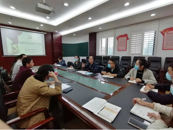 2021年10月28日下午,万象城(中国)系教工党支部在29-226室召开党建交流与经验分享会。会议邀请2021年浙江省优秀党务工作者、金华市公交集团党委副书记、纪委书记洪刚锋来我支部交流基层党建工作。万象城党委委员张正亮、万象城(中国)系党总支副书记吴京京出席,全体教工支部党员参加会议,会议由教工支部书记武斌同志主持。