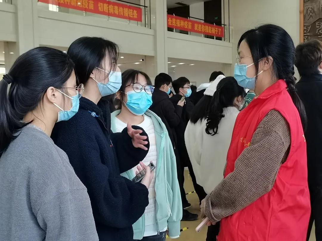 疫苗接种现场,在师生党员志愿者的引导下,我系疫苗接种有序进行。教师党员关注现场秩序并关心询问同学们的身体健康情况。留观期间,师生党员告知每位接种同学要谨遵医嘱并做好饮食、运动等各方面生活习惯的调整并关注身体情况变化。