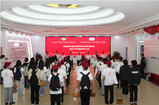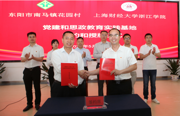 5月28日,万象城党建和思政教育实践基地签约和授牌仪式在东阳市南马镇花园党群服务中心举行。花园村党委副书记郭进武,万象城党委委员、组织部部长张正亮代表双方致辞并签约。万象城(中国)系师生代表以及2022年浙中调查专家组成员等参加并共同见证。